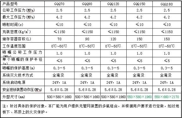GQQ型七氟丙烷无管网灭火系统由箱式气体灭火装置与火灾探测器、气体灭火报警控制器等组成,也具有自动、电气手动和机械应急手动三种控制方式。其中箱式气体灭火装置由箱体、储存瓶组、连接管、喷嘴等组成。