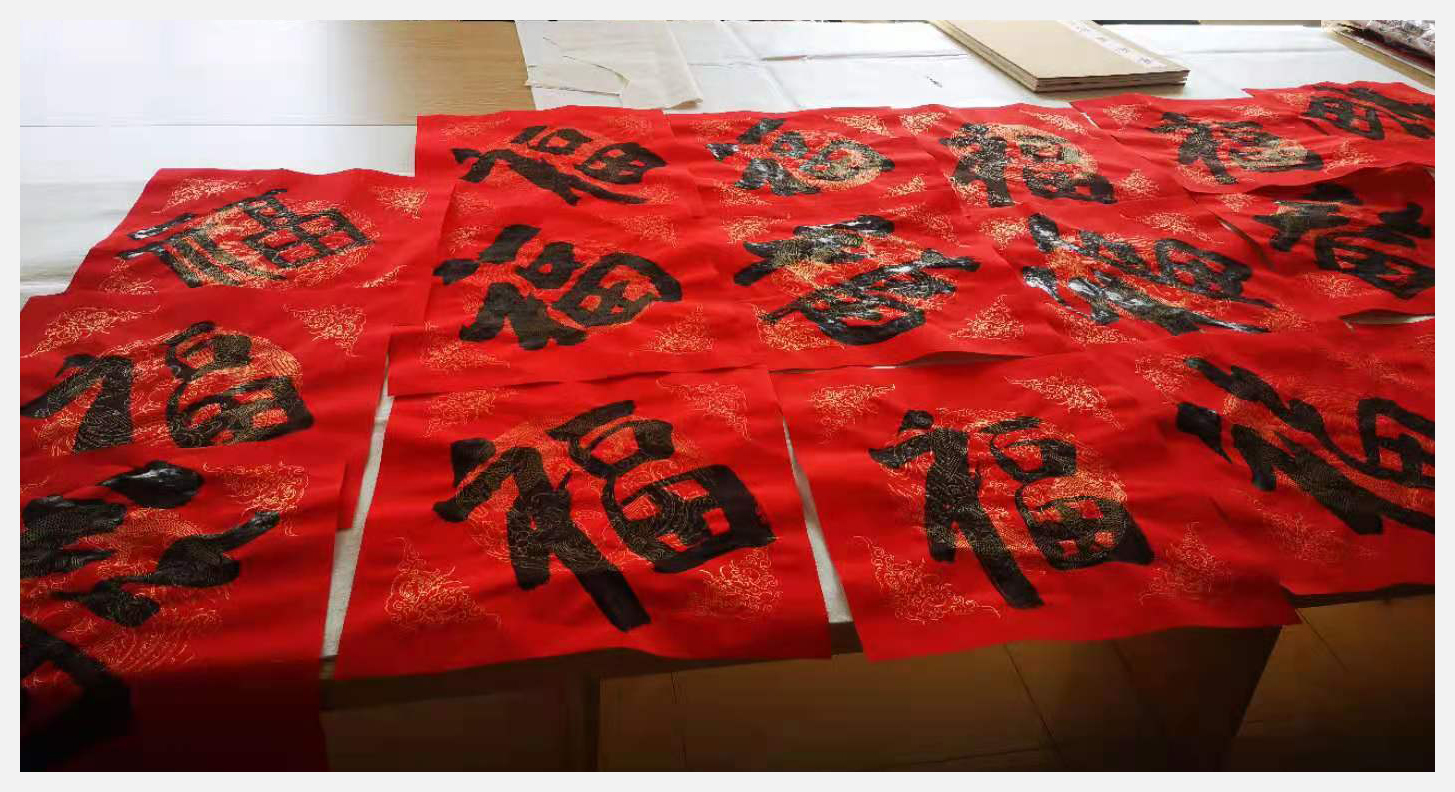 我公司特邀书法家来写春联 送福字